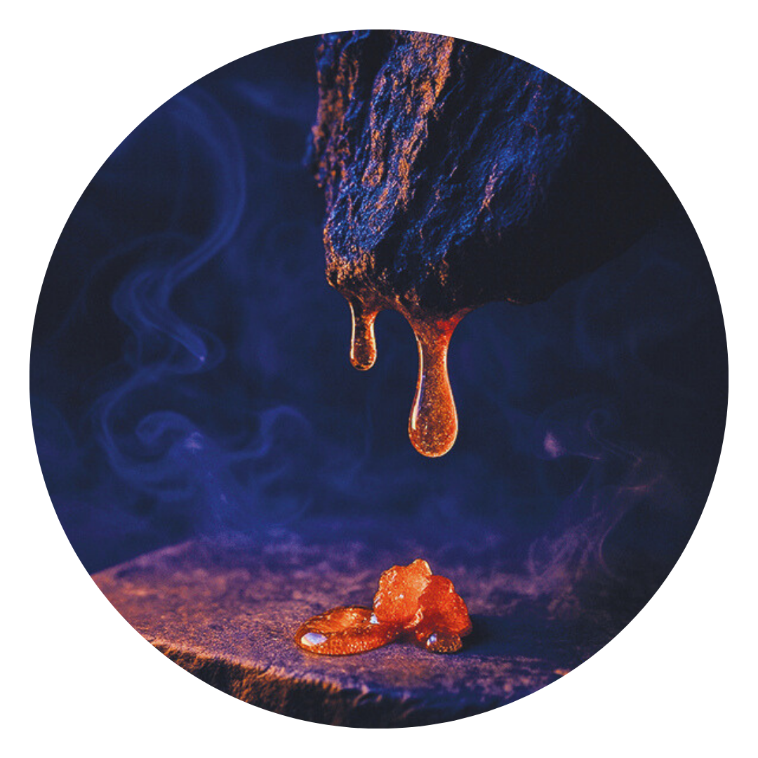 Calidez resinosa con alma nocturna. Un corazón ambarado y adictivo que envuelve con misterio.
